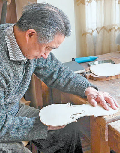 心中有“图景”后,便开始一刀一刨地琢磨。然而,要把想法转换为实物并不容易。“别看提琴只有百十个零部件,但木材的软硬、琴型的宽窄、音板的平凹都会对音质产生影响。”郑荃说。