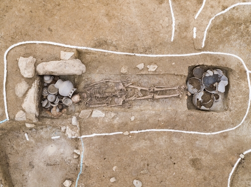 不过,遗骨周围没有出土可以推测身份的遗物,陪葬品多为瓦器,头部附近发现可能是农具镐头刃部的铁块,没有发现武器类遗物。(海外网 刘强)