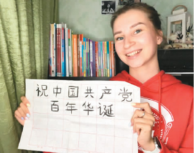 就读于同济大学、来自俄罗斯的莲娜祝贺中国共产党成立100周年。