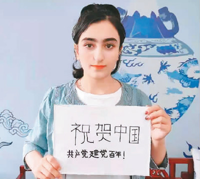就读于同济大学、来自阿富汗的扎荷拉祝贺中国共产党成立100周年。