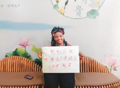 就读于同济大学、来自博茨瓦纳的琳达祝贺中国共产党成立100周年。