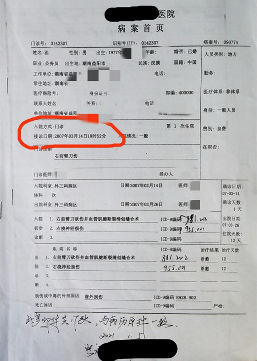 再审中法院调取的温某受伤后第一时间在益阳市中心医院治疗的病历资料显示,温某伤情为伸肌部分断裂、血运可,没有记录血管断裂,案发当日17时30分进行清创缝合手术,三测单记载温某当日23时外出。而在A医院病历记载是,案发当日温某到A医院门诊,医生接诊的时间为18时52分,从益阳市中心医院到A医院行程80余公里,“温某不可能分身有术”。
