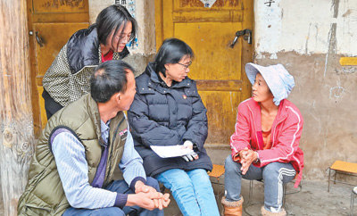 张桂梅(右二)在家访时与学生家长交谈。王秀丽摄(新华社发)