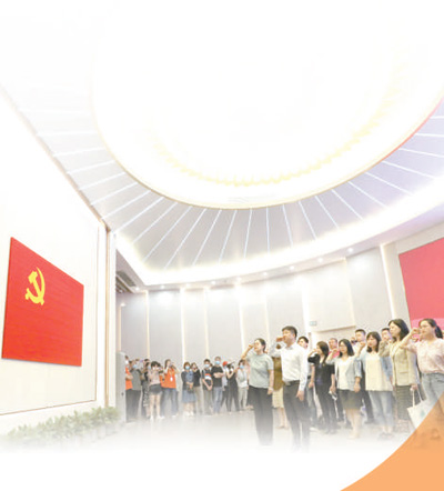 党员在中共一大纪念馆里重温入党誓词。