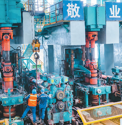 近日,中国宝武马钢股份特钢公司生产一线的工人们冒着高温维护设备。 罗继胜摄(人民视觉)