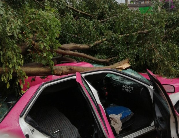 海外网7月21日电 据墨西哥《劳动报》20日报道,墨西哥首都墨西哥城近日出现暴雨天气,街道有树木被雨水大风冲倒,砸中附近的一辆出租车,所幸没有人员伤亡报告。