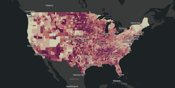 美国最新疫情地图。 图源:约翰·霍普金斯大学