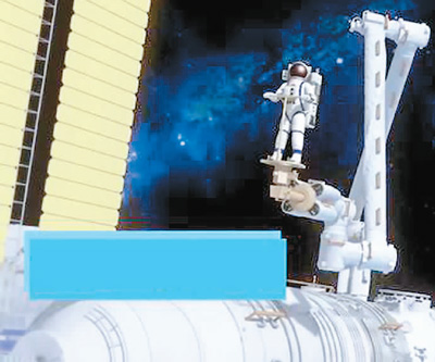 天和机械臂辅助航天员出舱活动示意图。