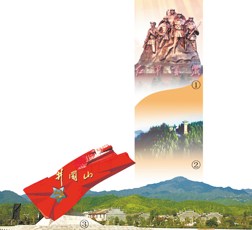 图③:井冈山脚下的“井冈红旗”雕塑。