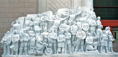 工人、农民、战士……65个不同职业的平凡劳动者形象,成为雕塑《伟业》的表现主体。“人民创造历史,人民创造伟业。‘为人民塑像、为人民立言’是历史赋予《伟业》的鲜明主题。”雕塑主创、清华大学美术学院副院长曾成钢介绍道。整座雕塑巧妙地分为两部分,以“火炬”和“旗帜”元素相连接,突出了伟大事业“薪火相传”“接力奋斗”的深层内涵。