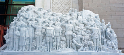 为使作品尽可能完美地诠释主题,从艺术构思到创作小稿、中稿、大稿,再到翻制石雕,每一阶段性成果都经历了反复推敲。据中国美术家协会秘书长马锋辉介绍,每座雕塑的整体形态、每个局部、每个事件、每个人物都经历了无数次审稿、修改和完善。每座雕塑都凝聚着大量心血、精力和汗水,是集体智慧的结晶。