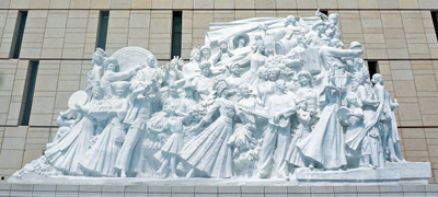 五大主题雕塑由中央美术学院、清华大学美术学院、中国美术学院、鲁迅美术学院、中国美术馆等单位担纲创作。276个栩栩如生的人物形象,583块清润圣洁的汉白玉,平均长度超15米、平均高度超8米、总重超2000吨的特殊体量,尽显信仰之美、崇高之美,令许多现场观众深感震撼。