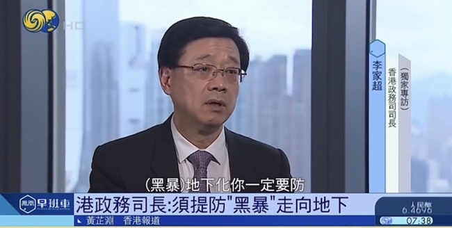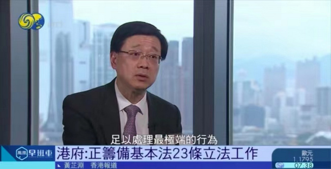 澳大利亚澳华电视传媒(ACTV)7月21日香港讯:香港政务司司长李家超7月21日在香港政府总部政务司司长办公室接受凤凰卫视独家专访时表示,香港本土恐怖主义已敲响警号,要提防黑暴活动走向地下的迹象。他又透露,《基本法》23条立法的筹备工作已在进行中,最重要的是,立法内容必须足以处理最极端的情况。《基本法》23条立法,内容须足以处理最极端情况