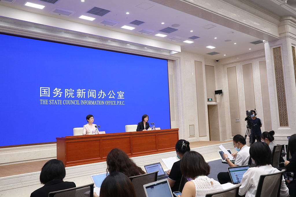 2021年7月15日,国务院新闻办举行新闻发布会,国家统计局新闻发言人、国民经济综合统计司司长刘爱华介绍2021年上半年国民经济运行情况,并答记者问。(图源:人民视觉)
