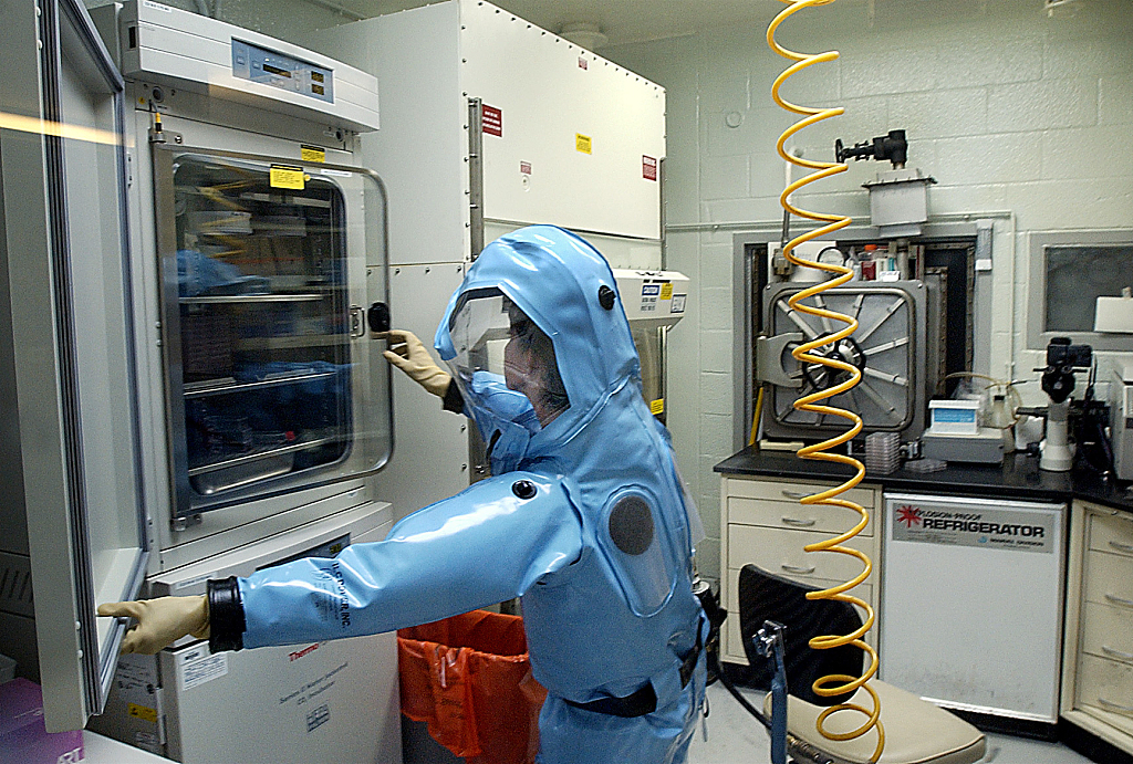 德特里克堡美国陆军传染病医学研究所内的工作人员(资料图)