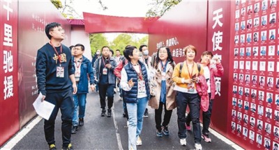 4月19日至24日,受湖北省襄阳市邀请,首批辽宁、宁夏、福建援襄医疗队队员回到襄阳进行疗休养。图为医疗队员在参观展览。