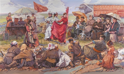 草原上的乌兰牧骑(油画) 张可扬