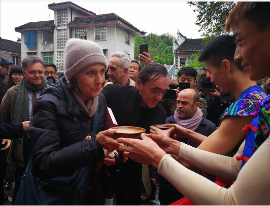 喝完苗家拉门酒,意大利艺术家参加“凤凰艺术边边场”