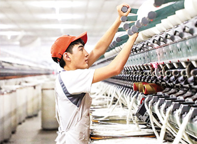 湖北援疆企业楚新农业有限公司建立至今,已带动当地就业150余人。图为7月15日,工人正在该企业纺纱生产车间工作。