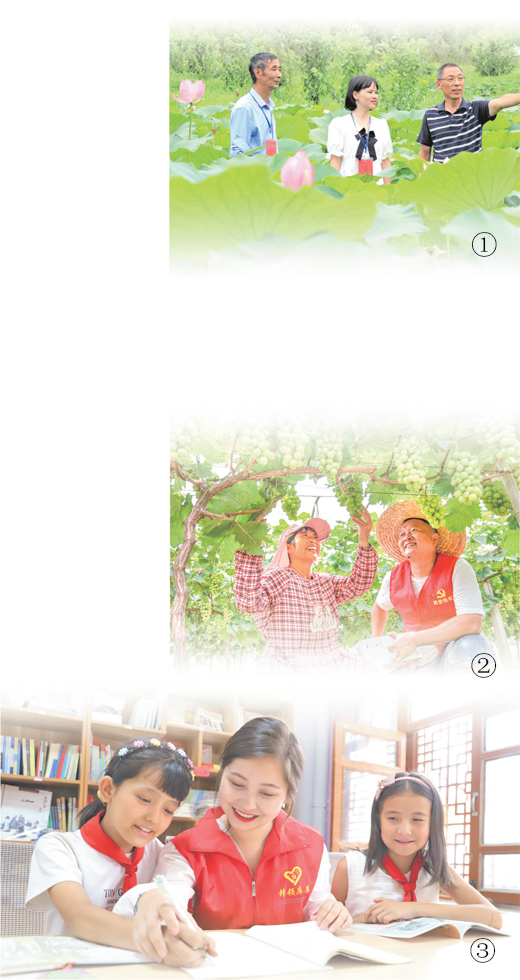 图③:新疆库车市热斯坦街道党员干部辅导孩子作业。吴 乐摄