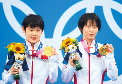 在跳水女子双人10米台比赛中,首次参加奥运会的中国选手张家齐和陈芋汐从第一跳起便领先对手,以较大优势赢得金牌,实现中国在该项目上的奥运会六连冠。(记者刘峣)