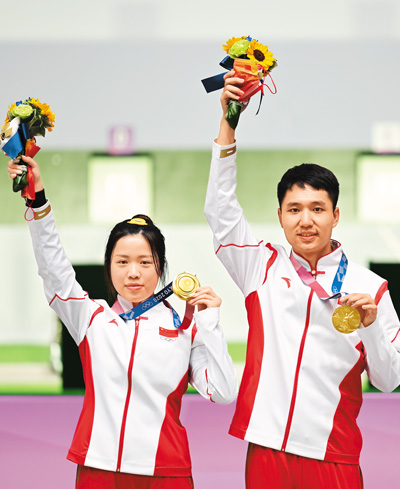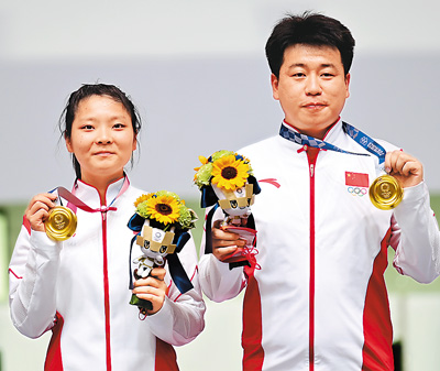 射击赛场上,中国选手在本届奥运会新增的混合团体项目上射落两金。10米气手枪混合团体决赛,第四次参加奥运会的老将庞伟和“00后”小将姜冉馨搭档摘得金牌;10米气步枪混合团体决赛,为中国代表团赢得首金的杨倩与杨皓然配合默契,战胜对手获得冠军。截至目前,中国射击队已在本届奥运会上收获3枚金牌。