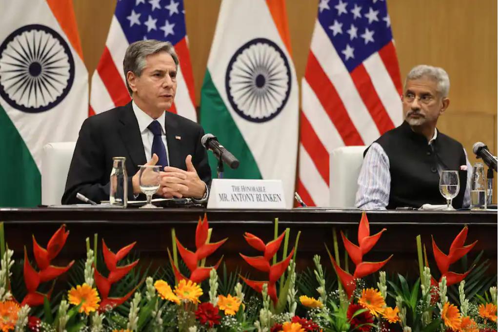 7月28日,美国国务卿布林肯与印度外长苏杰生共同出席记者会。(图源:路透社)