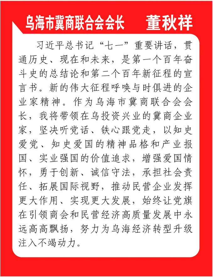 〖继往开来 蓄势为新〗乌海市民营企业家:致敬建党百年 凝聚奋进力量!