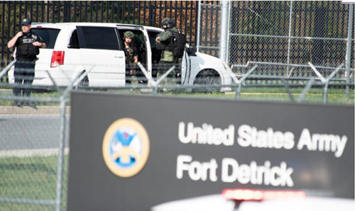 资料图:美国德特里克堡军事基地。(图片来源:法新社)