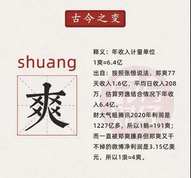 在郑爽天价片酬被曝光后,网友发明了新的年收入计量单位“爽”。图源:网络