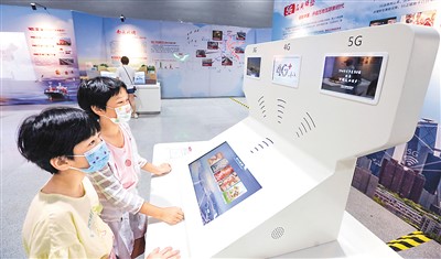 日前,在中国科学技术馆“科创百年——建党100周年科技成就科普展”上,小朋友参观通信发展展台。