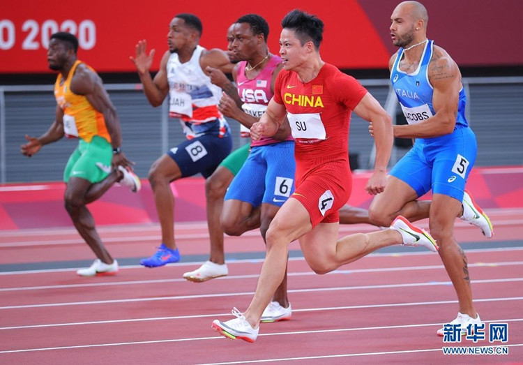 8月1日,苏炳添在比赛中。(新华社记者 李明 摄)