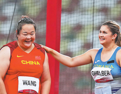 8月3日,中国选手王峥(左)在女子链球决赛中。新华社记者 吕小炜摄