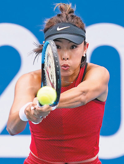 7月26日,中国选手王蔷在网球女子单打第二轮比赛中回球。新华社记者 李一博摄