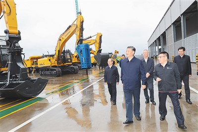 4月26日下午,习近平在广西柳工集团有限公司察看产品展示。