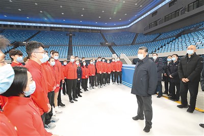 1月18日上午,中共中央总书记、国家主席、中央军委主席习近平在位于北京市海淀区的首都体育馆,同国家花样滑冰队和短道速滑队运动员、教练员等亲切交流。