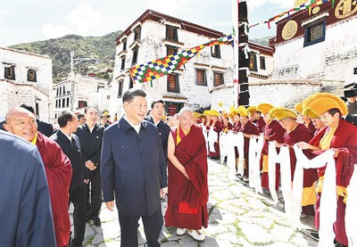 7月22日下午,习近平在位于西藏拉萨西郊的哲蚌寺考察。