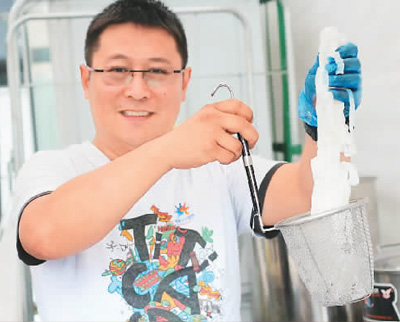 方刚在英国“米齐临”长沙米粉店制作米粉。