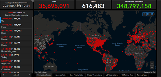 美国仍是全世界目前累计新冠肺炎确诊病例和死亡病例最多的国家。