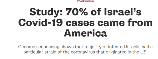 △以色列特拉维夫大学2020年5月发布的研究结果显示,该国约70%的确诊病例感染的病毒毒株来自美国。