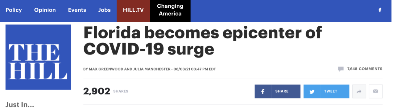 然而,佛州州长德桑蒂斯却拒绝颁布口罩令,甚至坚称“最近出现的新感染高峰是季节性的小插曲,各项数据将从8月开始下降”。