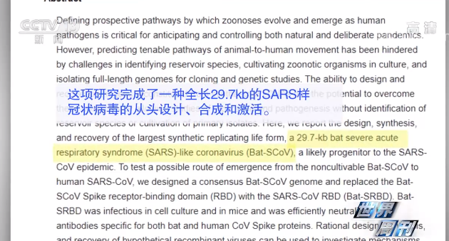 巴里克:没错,你可以不留签名进行合成,目前有三四种合成冠状病毒的方法,利用其中任何一种方法,都可以不留痕迹地在实验室制造病毒。