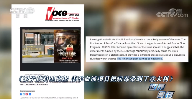 今年7月7日,意大利媒体《声音的力量》发表的一篇名为《源于德特里克堡 美军血液项目把病毒带到了意大利》的文章指出,美军借助“武装部队血液项目”的传播路径,不应被忽视。