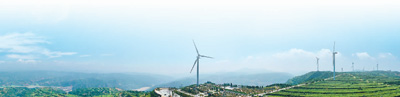 河南省三门峡市,一座座风力发电装置耸立在山地丘陵地带。张远明摄(人民视觉)