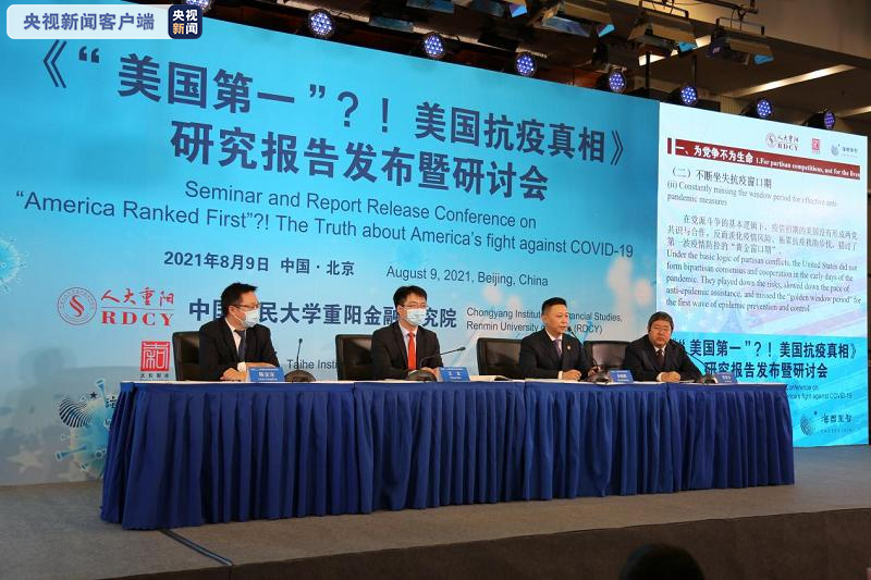 全球新冠疫情尚未平息,美国媒体已公然将美国抗疫评为“世界第一”。为此,2021年8月9日,中国人民大学重阳金融研究院(人大重阳)联合太和智库、海国图智研究院发布《“美国第一”?!美国抗疫真相》智库研究报告(以下简称《报告》),报告有中、英、法、西班牙语四个语种,向全世界客观揭露美国抗疫真相。这是全球首份揭露美国抗疫真相的智库报告,也是首次由三家知名智库联合研究的翔实报告。