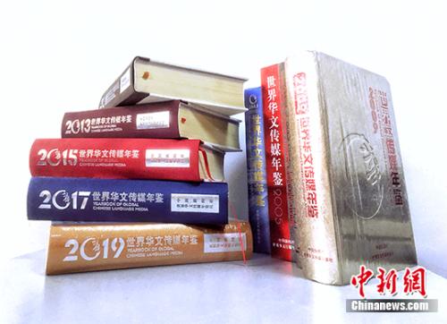 历届论坛出版的《世界华文传媒年鉴》。 刘立琨 摄