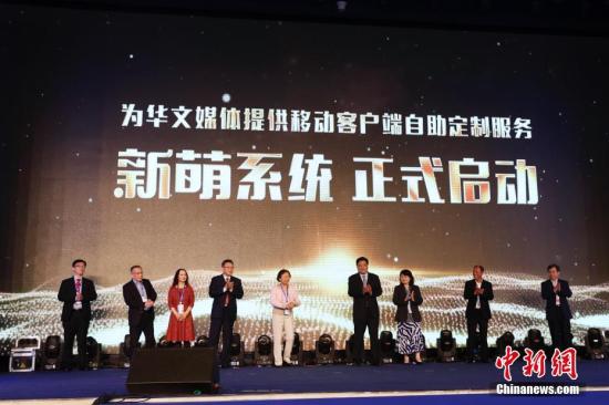新媒体技术发展推动着传媒变革,中新社为更好地服务华媒,发挥自身技术优势,研制开发了“新萌系统”,为华媒提供全面的移动端“平台+内容”的服务解决方案。“新萌系统”启动仪式在第十届世界华文传媒论坛上举行。中新社记者 韩海丹 摄