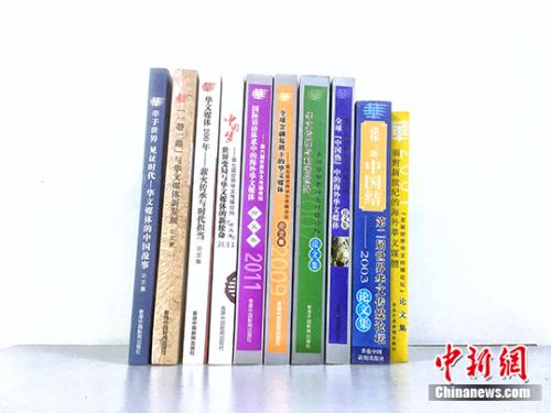 历届世界华文传媒论坛出版的论文集。刘立琨 摄