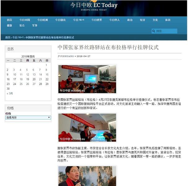 捷克“今日中欧”新闻网站开通的“今日张家界”专栏