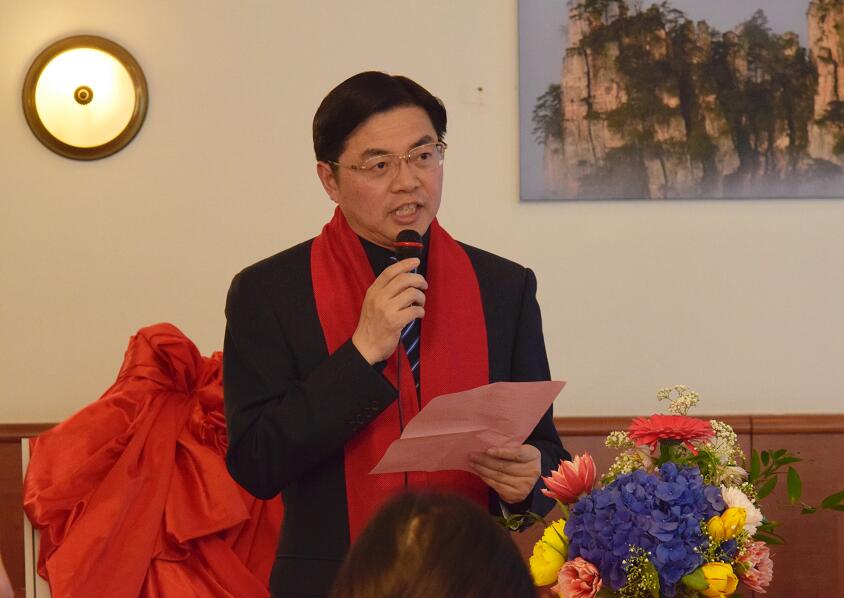 捷克中欧新闻社总编辑黄频在揭牌仪式上讲话